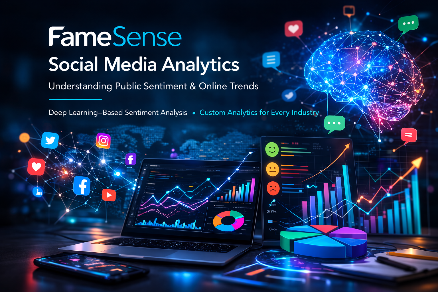 The FameSense Social Media Analytics course introduces students to analyzing and interpreting social media data to understand public sentiment and online trends. Students learn how deep learningβbased sentiment analysis evaluates audience reactions and how analytics tools can be customized for different industries and use cases. The course develops skills in interpreting insights and using social media data to support informed marketing and communication decisions.
